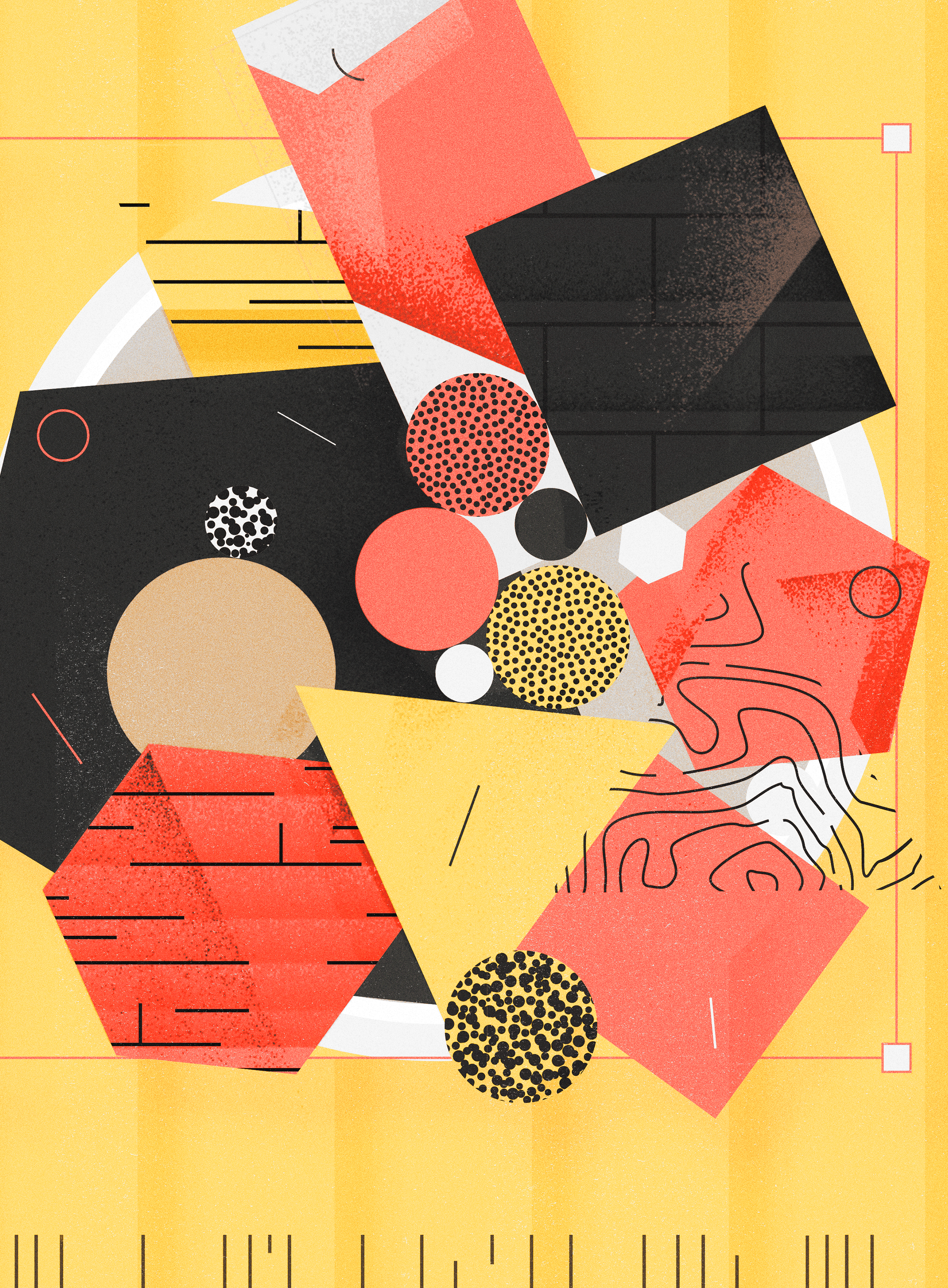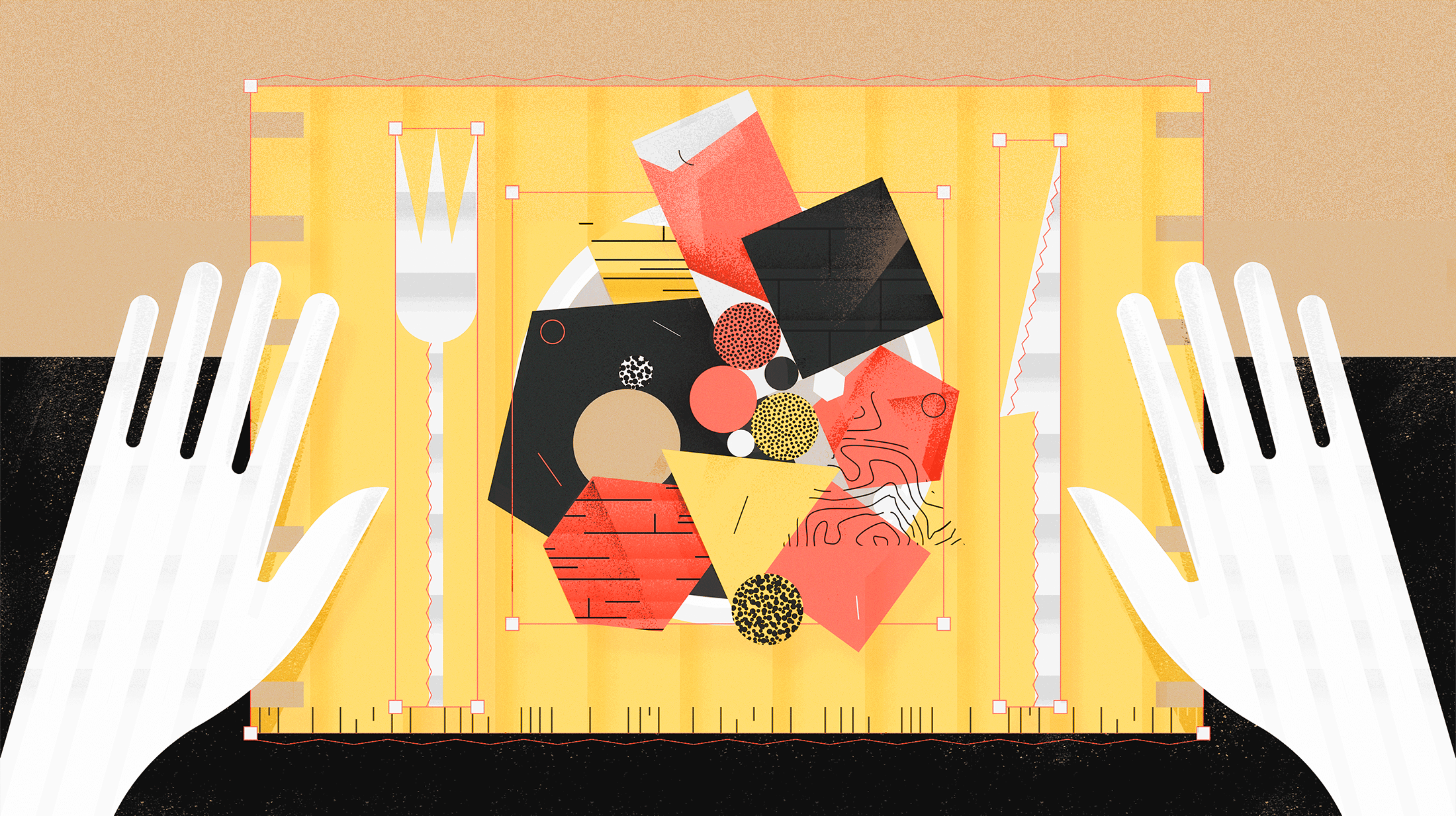 Illustrator - Getting Started with Adobe Illustrator: Poetic approach to the concept of getting started | The showcase of the key elements as storytellers | The invitation to dig in and to try new experiences | Human figure to place the user in the center stage of the action | Worflow tools empowered by UI elements | Primary shapes, vector shapes, handles and transformation tools as elements for storytelling | The plate and elements displayed within their own artboard, | Intro to align and distribuition of objects as a reference to the workflow.