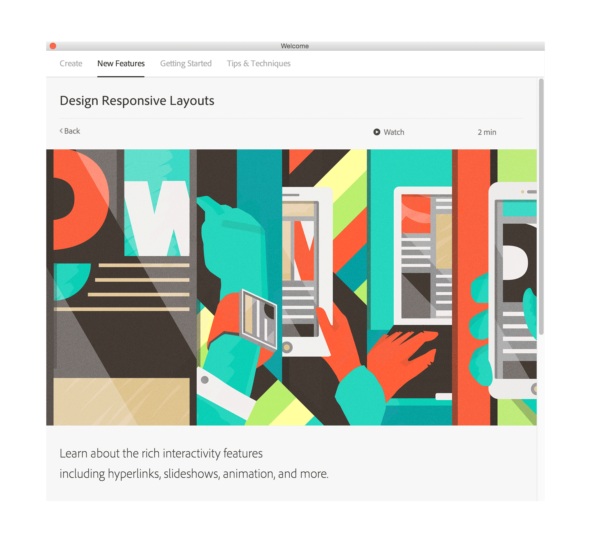Dreamweaver - Design Responsive Layouts: Character story cross-platform | Media from composition to new technologies | Liquid Composition | Playful reference to Smart Watches | Tablet | Desktop | Mobile.