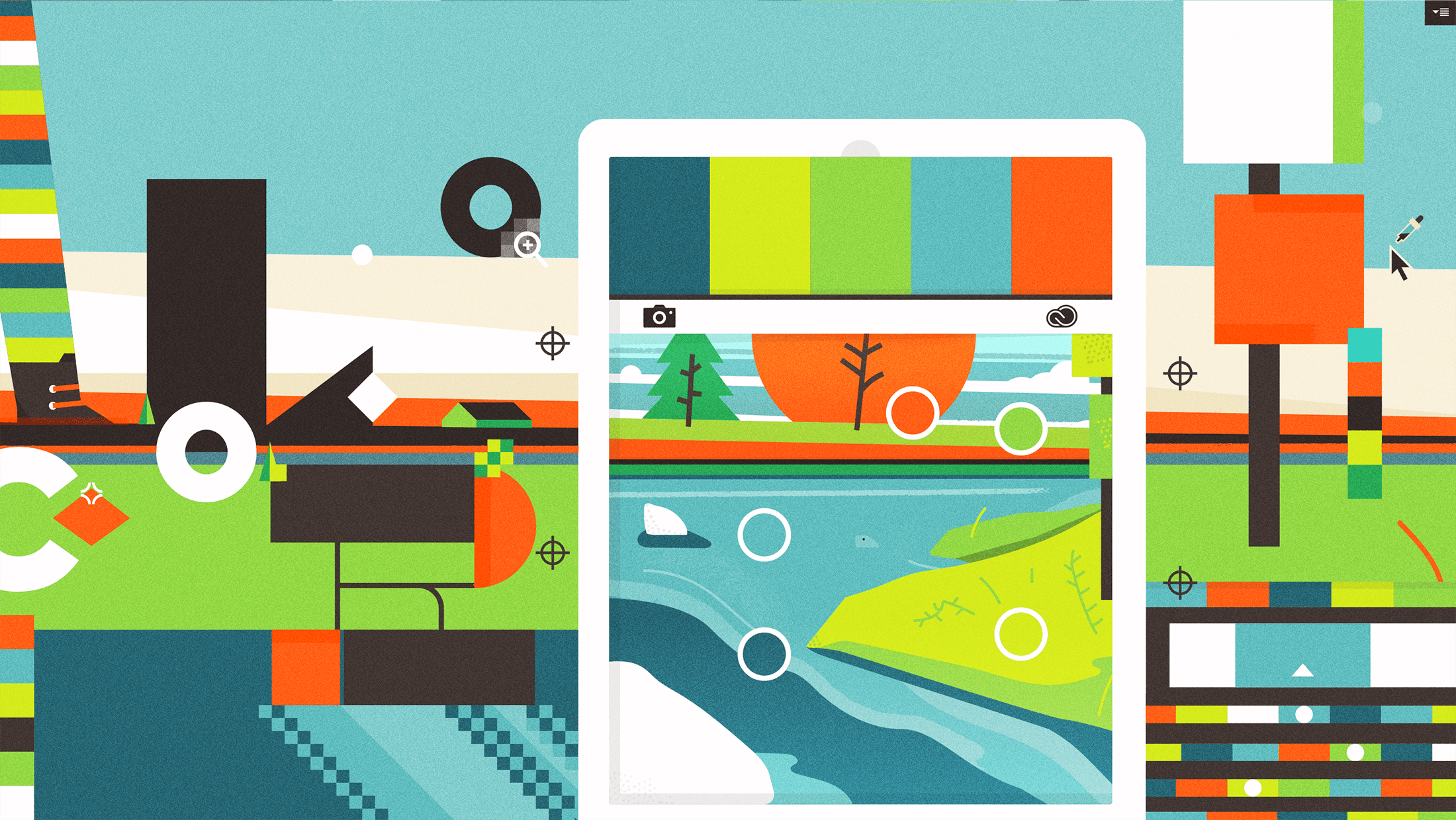 Color Themes in Indesign: Color as an active element in the landscape | Showcase Color Integration in InDesign and Adobe CC Platforms (Cloud Libraries) | UI as storytelling elements | Poetic approach to color in the workflow | Explosion of color & typography to build narrative and dynamic composition.