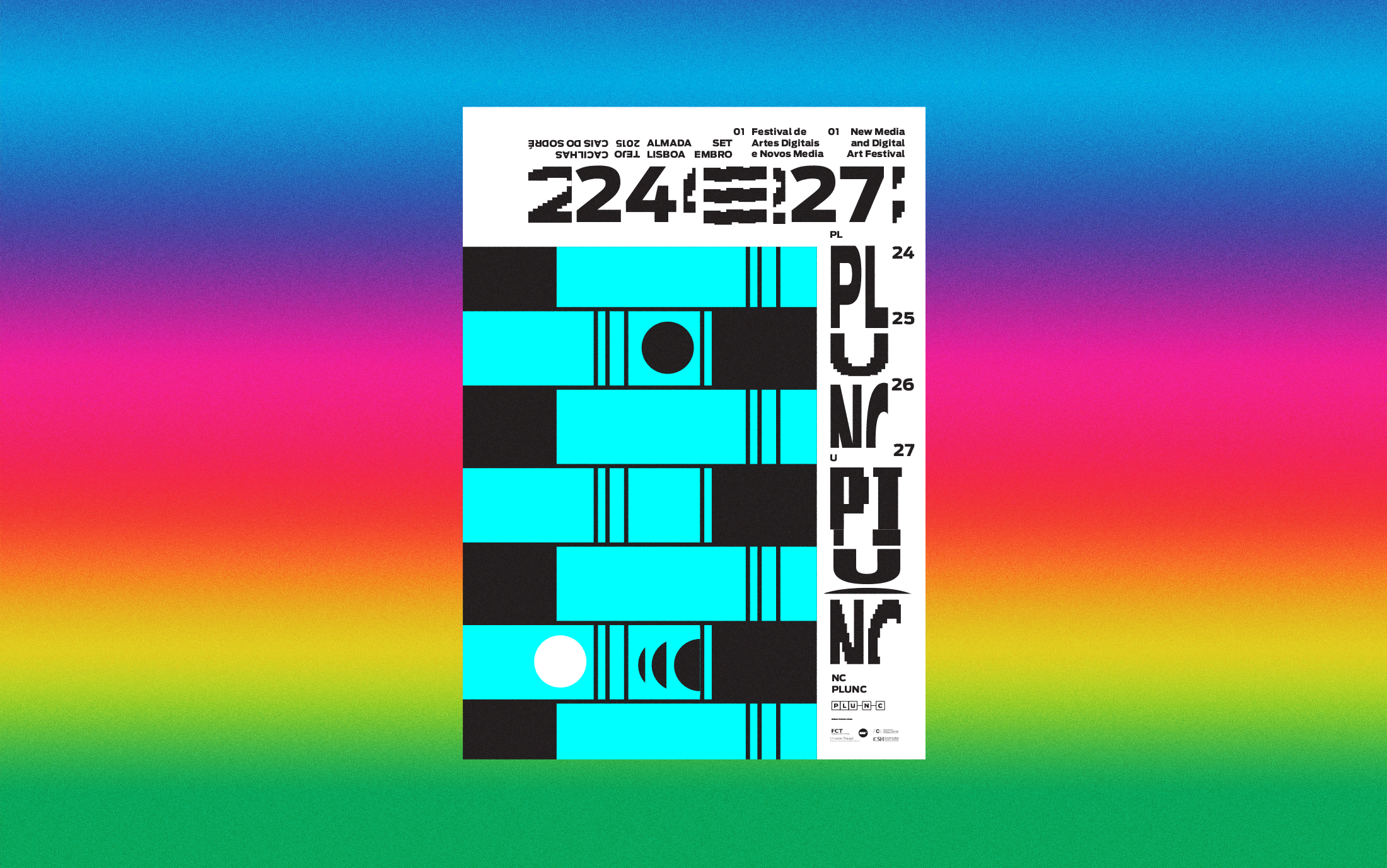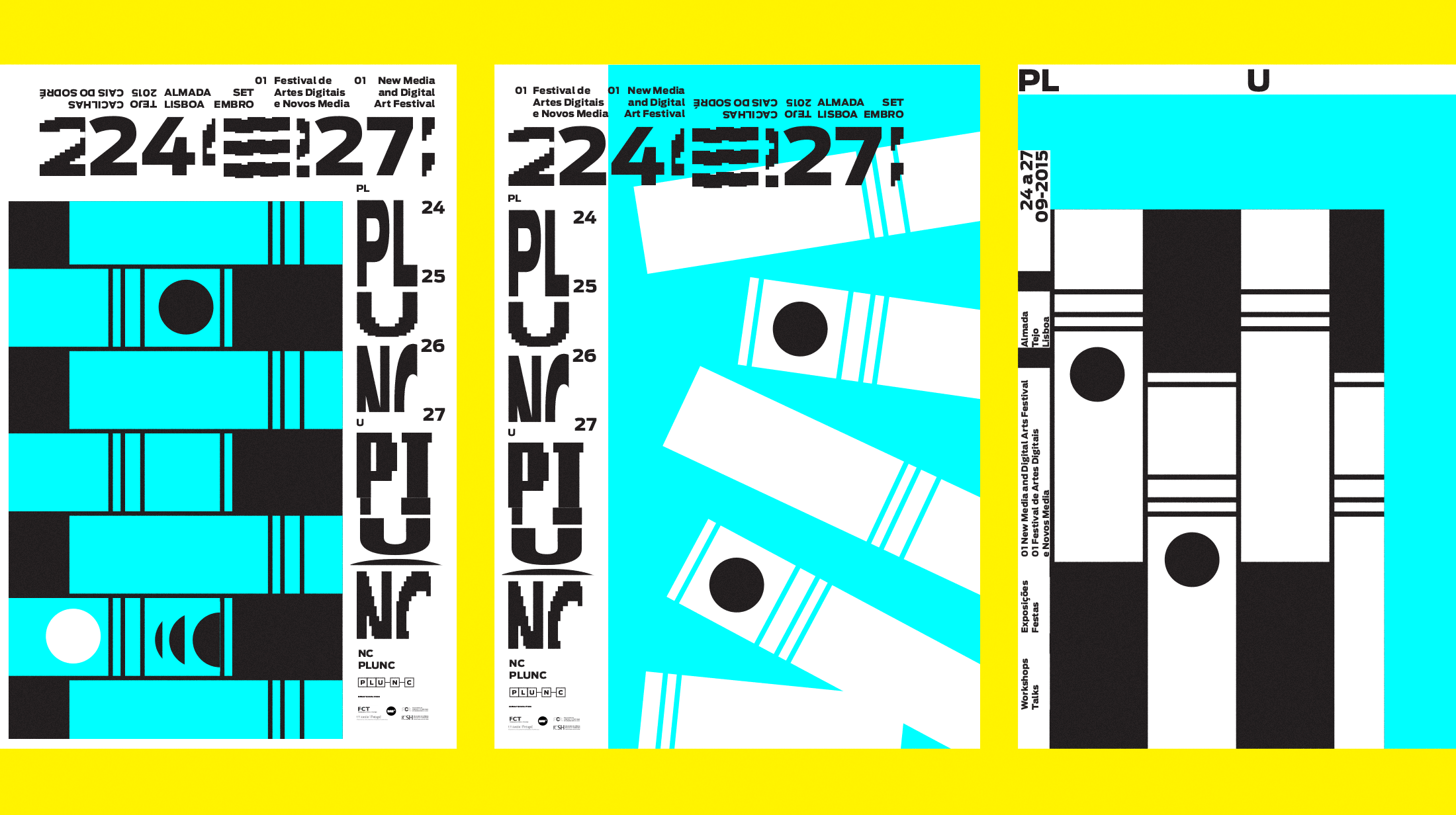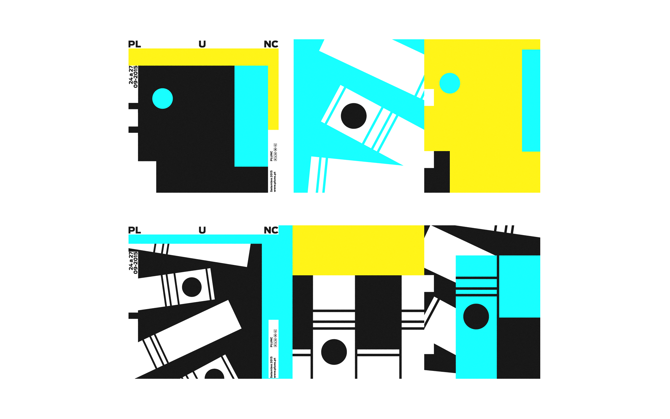 PLUNC is a technological journey between the two banks of a river and a hybrid between communication and geographical space. As an experimental stage, the identity reflects the dialogue between the abstract and the figurative - a symbolic approach that characterizes the experimentalism, the connection, the code and the expressive elements. From a symbolic standpoint, the approach promotes dialogue between the figurative and experimental - the connection and the marginal, the scope, the interface and the user. Based on a visual system where language sets the tone of the communication Plunc is a coded system synthesis and message: a figurative stage on which the message is not restricted to a single illustration but to a graphic lexicon - 11 infinite posters in loop and a responsive system dictate the language. Among the synthesis and the system, just like the bank and the rive rises the creative freedom and the strength of the narration. The water and the reflections. The final reason ing in compositing the symbols is thrown to the background, allowing only the data and rules to define the visual system, looking forward to reach the abstract. The image as a reflection of the concepts and the concepts as the genesis of a lexicon. A code. Plunc.