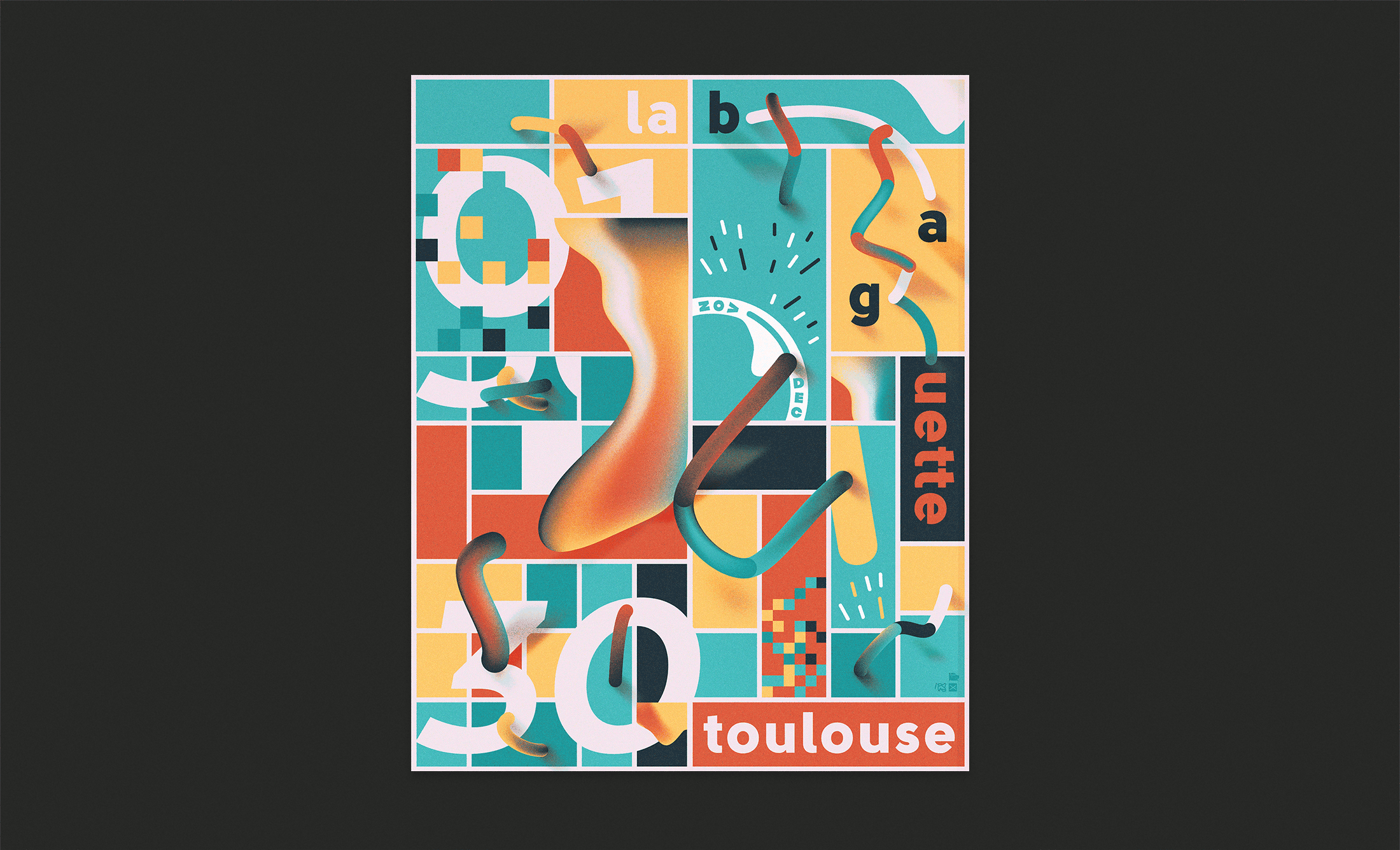 Media Encoder - What is Adobe Media Encoder: Focus on symbolic elements as storytellers for video and audio | Landscape elements as the queue of AME, road, nature and urban as different topics of input representing different projects Abstract approach to motion and transcodding | Top to bottom dynamic motion in relationship to this dynamics of input and output | 4 areas in close relationship to AME 4 pannels Explosion of color & typography to build narrative and dynamic compositions as a referral to media.
