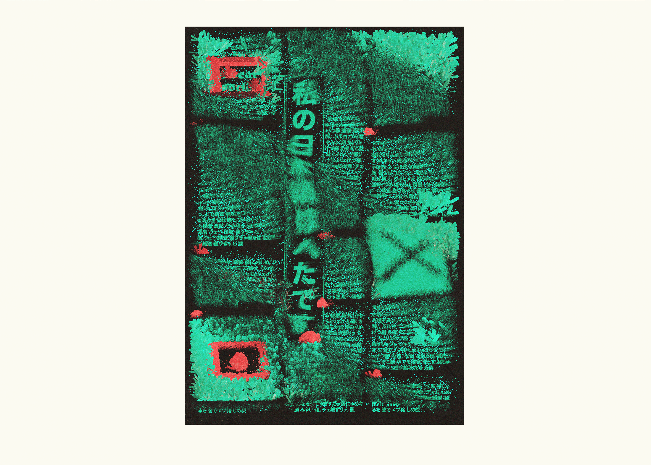 We are looking at a series of signage pieces that overall sum up the experience in 2 gigantic vinyls, 14 human sized signage posters to hold the identity in the hall of the British Film Institute setting the tone, preparing an working in line with the motion pieces in the show.