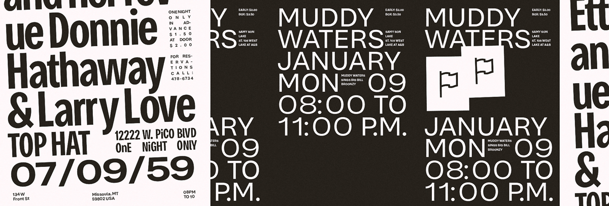 Oddly enough, they are a serious compilation of posters for unique events and clients. All kinds of events and clients. Some of them even approached us behind the woods in dark blurry halls. Some of these have been in Switzerland's Soirée Graphique with David Willen; some starred in anachronistic events inside churches; others didn't.