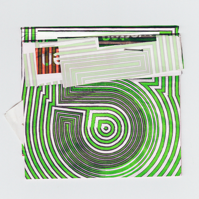 Objects of memory, the music is materially composed by 1 constant fluorescent acid yellow, a neutral typographical approach, and a plural series of printed outer and inner sleeves as well as screenprints over vinyls, inner and outer