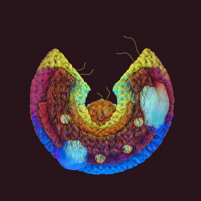 How does one design feelings? By allowing silence to make music (the AURA label is plain black) and loudness to convey silence (the screen printed side of AURA's doesn't allow the vinyl to play music). We've framed the narrative in the rhythm, in the microscope and the telescope and on disruptive compositions as a continuity of the process of creating electronic music that breaks and grows.