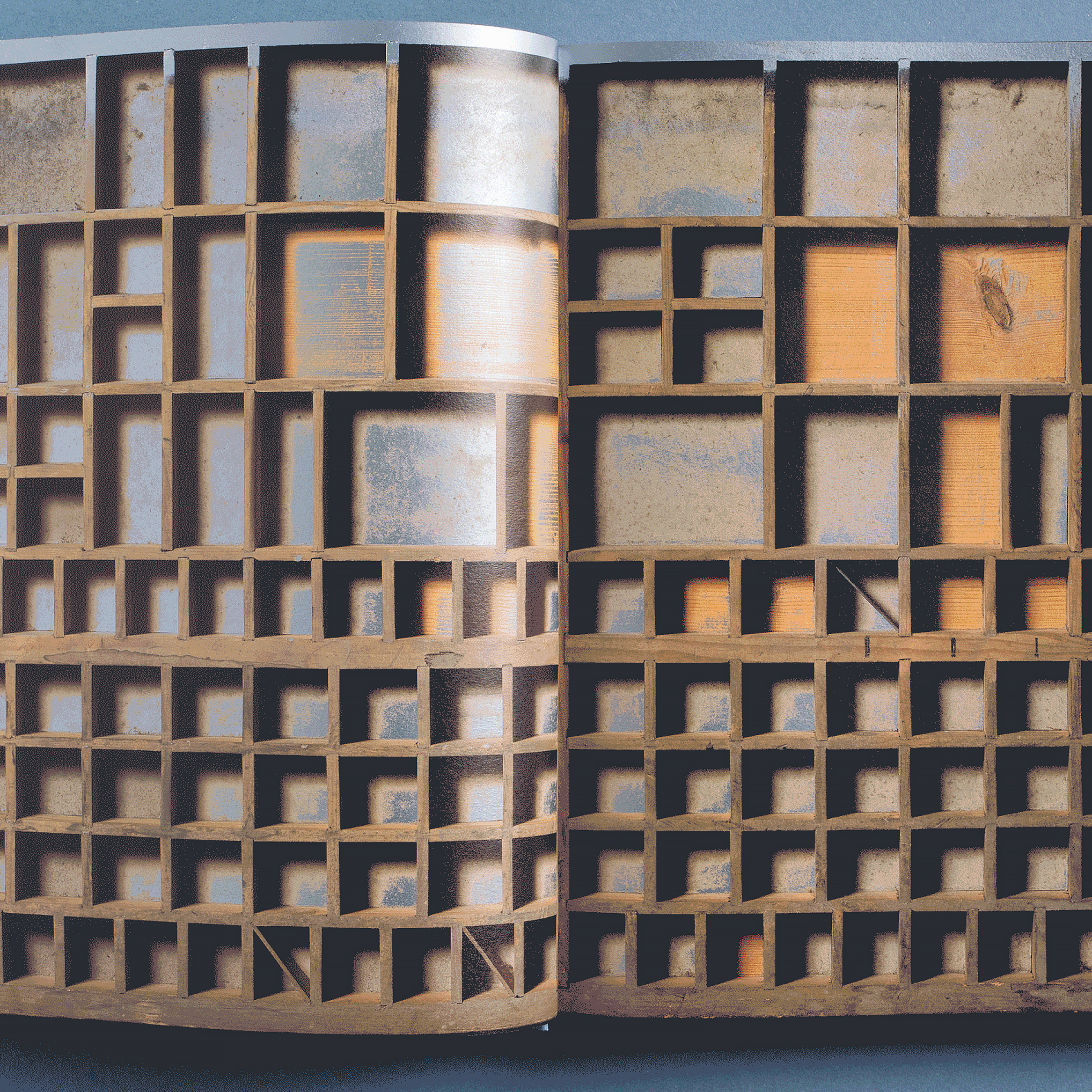 As a sculpture, Imprimere was designed to provide many tactile sensations that belong to the industrial side of printing houses and processes of craftsmanship. Special metallic inks were used as an overprint on top of a visual essay that provides macro shots of dirty and oily mechanisms.