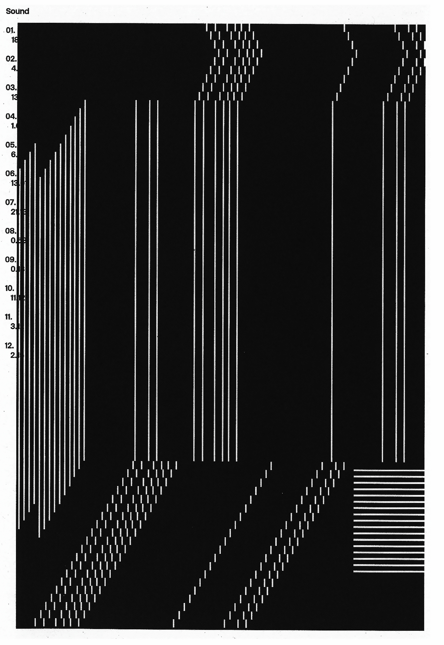 This one is a visual musical score interpreting thunder and pressure in nankin ink for the 17:12 min percussion masterpiece, "He asked us (Underworld) if we would “Take responsibility for all aspects of music and sound for the show". We said yes.” […] “I want to have a thousand drummers... maybe more.. what do you think? Can you take care of that?” We said yes”, in a 10x27 grid of rhythm, community, industrial revolution and pandemonium. It went only upward from here.