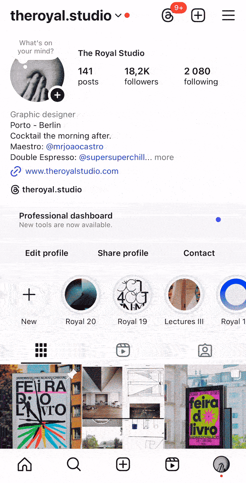 17.02.2021—Interview and playlist for Giacomo Felace FricoDisco was added to Words. — 20.01.2021—Modern Dancing, Whitehaus was uploaded to Instagram — 30.12.2020—ESAD invited us to reflect on 2020, wishing 2021 to be good. We did it in order to balance the skies — 18.12.2021—Criatório, a cultural programme offering funds for the development of art programmes was designed and uploaded to Instagram.
